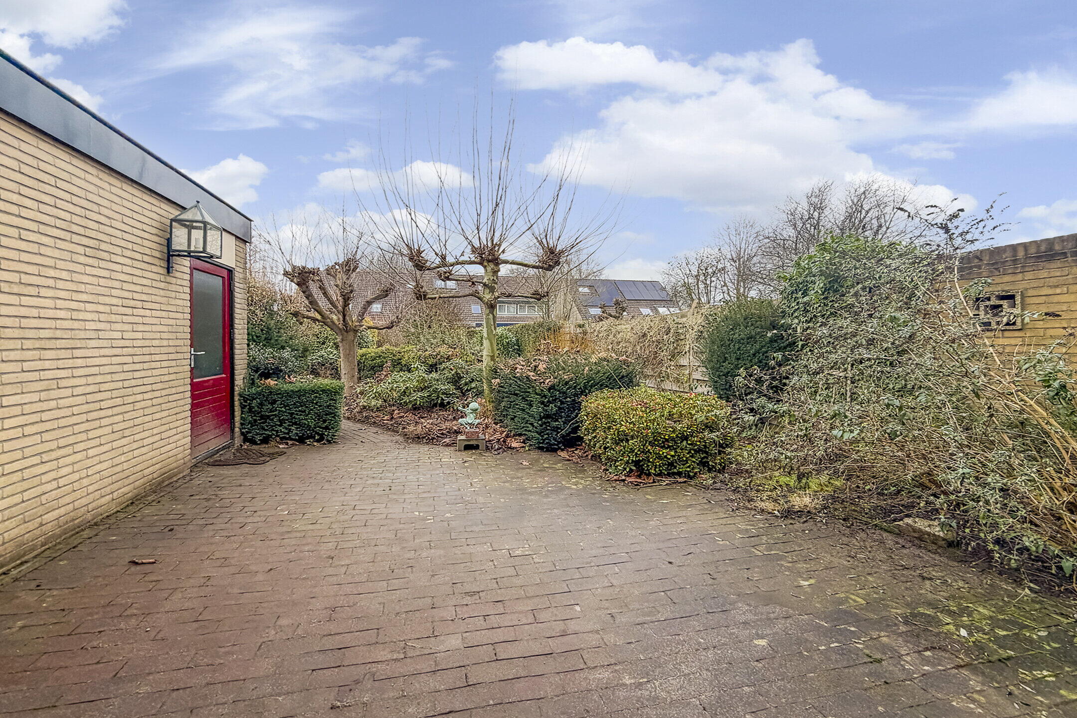 De woning beschikt over een zeer diepe en zonnige achtertuin van maar liefst 20 meter, gelegen op het westen. Dat betekent volop zon in de middag en avond – heerlijk voor lange zomerse avonden en voor tuinliefhebbers. De tuin biedt volop mogelijkheden voor meerdere terrassen en eventueel een speelplek voor de kinderen. Dankzij de vrijstaande ligging ervaar je veel privacy, terwijl de geschakelde garage zorgt voor extra praktisch gemak.