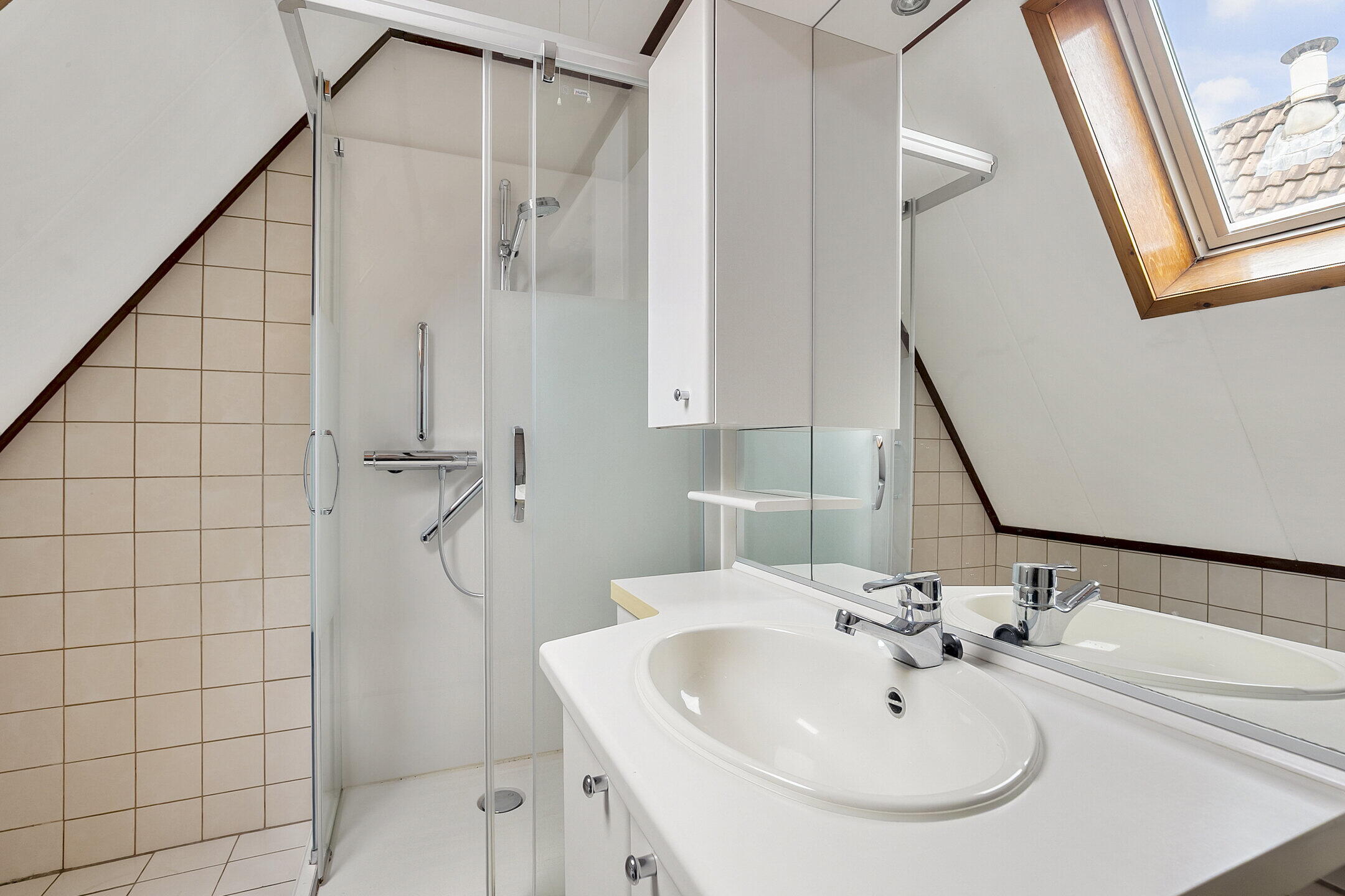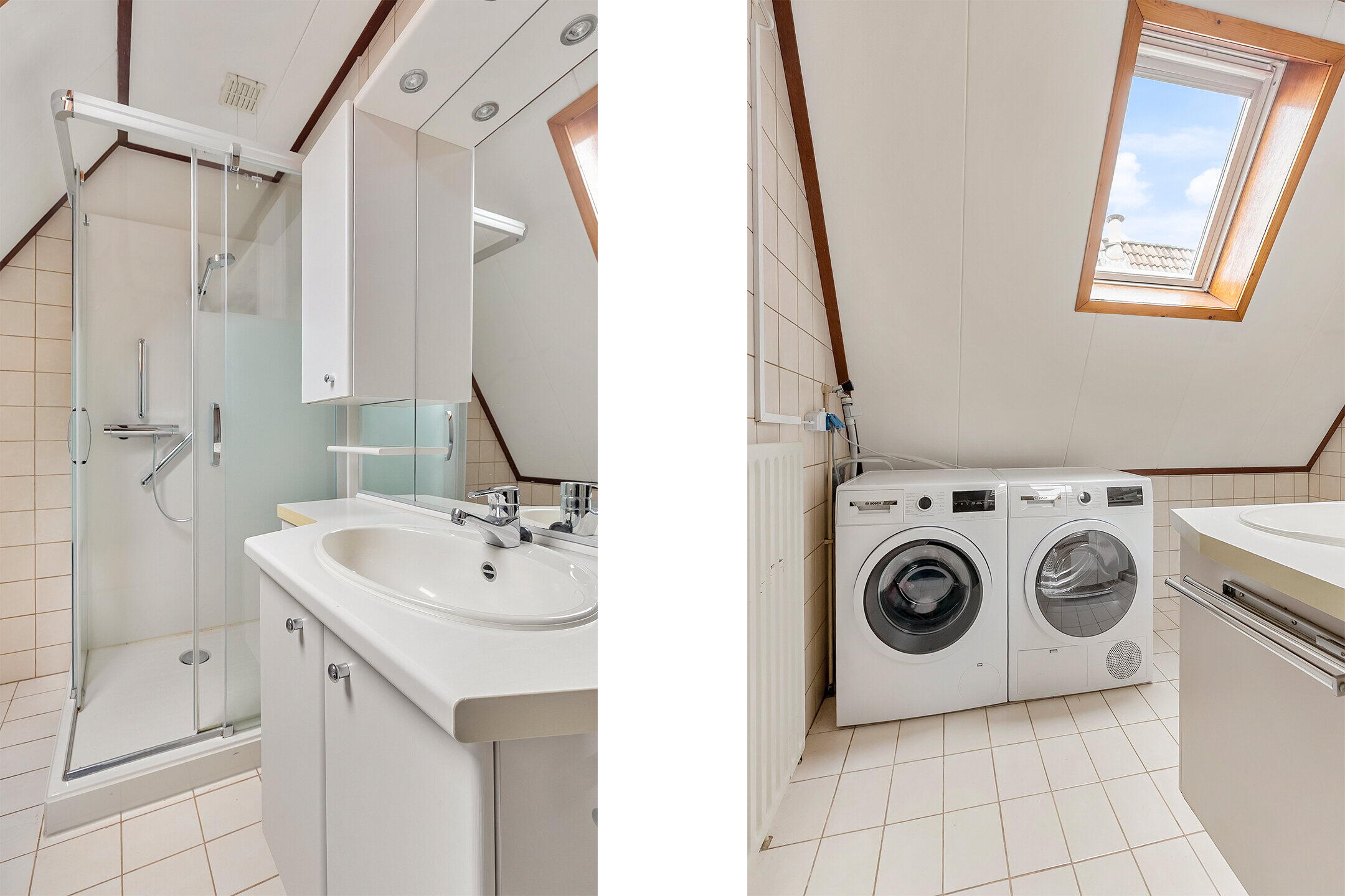 - Douche, wastafel, wastafelmeubel, wasmachineaansluiting